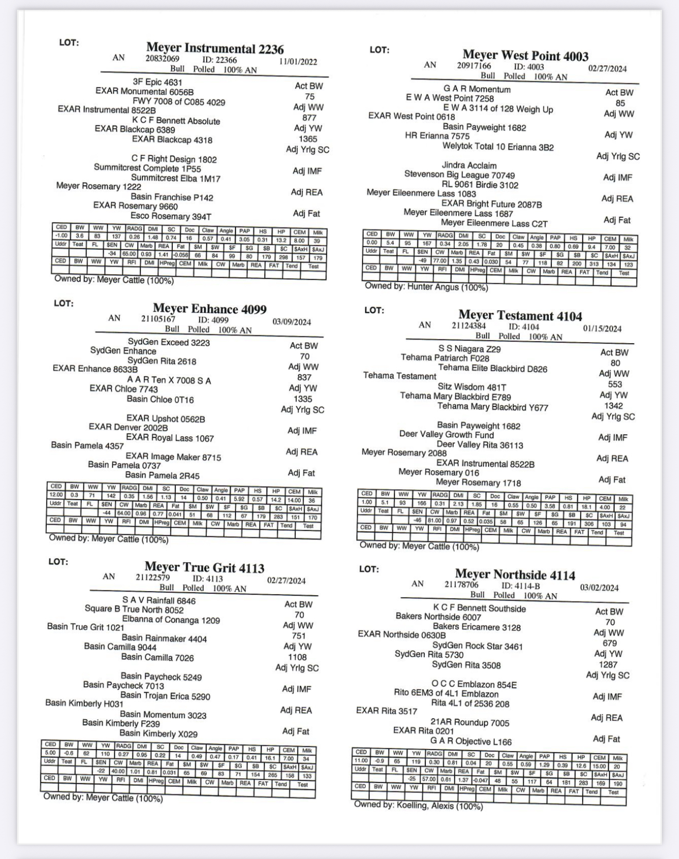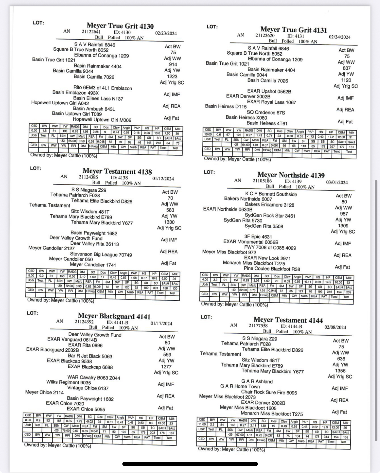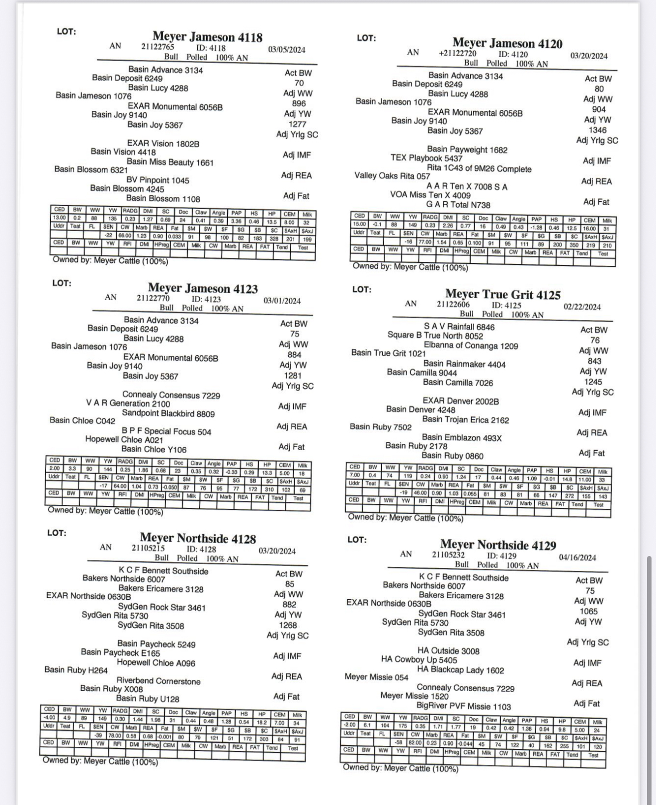 Notice of Breeding Bull Requirements: For a bull to be consider and offered for sale as a breeding bull two conditions must be met. First a valid positive Breeding Soundness Exam (BSE) test must accompany the bull. To be valid it must be completed and dated within 30 days of sale date. Additionally, bulls over 2 years of age or non-virgin bulls must also provide a Negative Trich test. To be valid it must be completed and dated within 30 days of sale date AND the bull would have to be quarantined away from females until after the sale. Virgin bulls can sell with a signed virgin affidavit. Bulls offered without meeting the breeding bull requirements are slaughter bulls.
